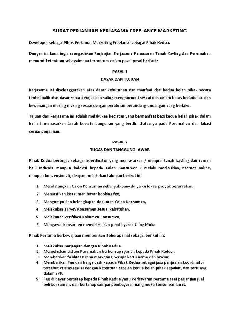 Surat Perjanjian Kerjasama Freelance Marketing Pdf